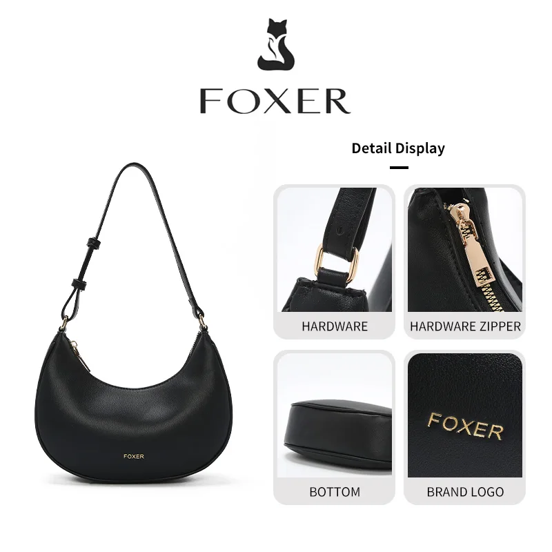 Factory wholesale FOXER Ladies Fashion Half Moon Bag sling Hand Bags Pu Leather Women's Shoulder Bag for Girls New Design 2026